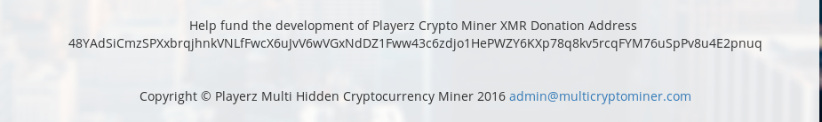 Ironically, the Playerz Multi Hidden Cryptocurrency Miner author has provided a wallet address for donations to help fund the development of this malware.