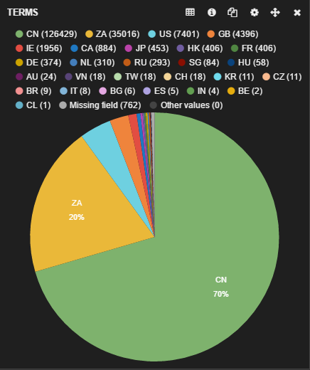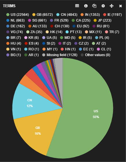 The geographic distribution of Android traffic that is leaking data is shown in the following graph.