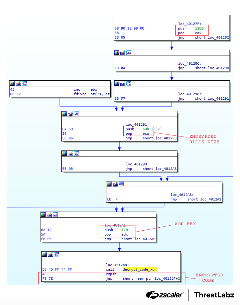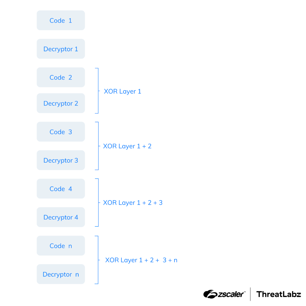 Figure 3: SmokeLoader’s stager using nested XOR encryption layers.