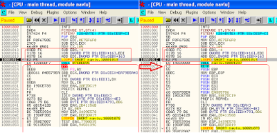 The HttpBrowser RAT installer is responsible for dropping the above three files and running the legitimate Symantec Antivirus binary VPDN_LU.exe. The legitimate binary contains the navlu.dll in the import table ensuring that the DLL will be loaded before it runs. The navlu.dll that gets loaded in this case will be the fake Symantec DLL file present in the same directory and it will patch the entry point of the main executable file with a jump instruction to run the DLL’s code instead.