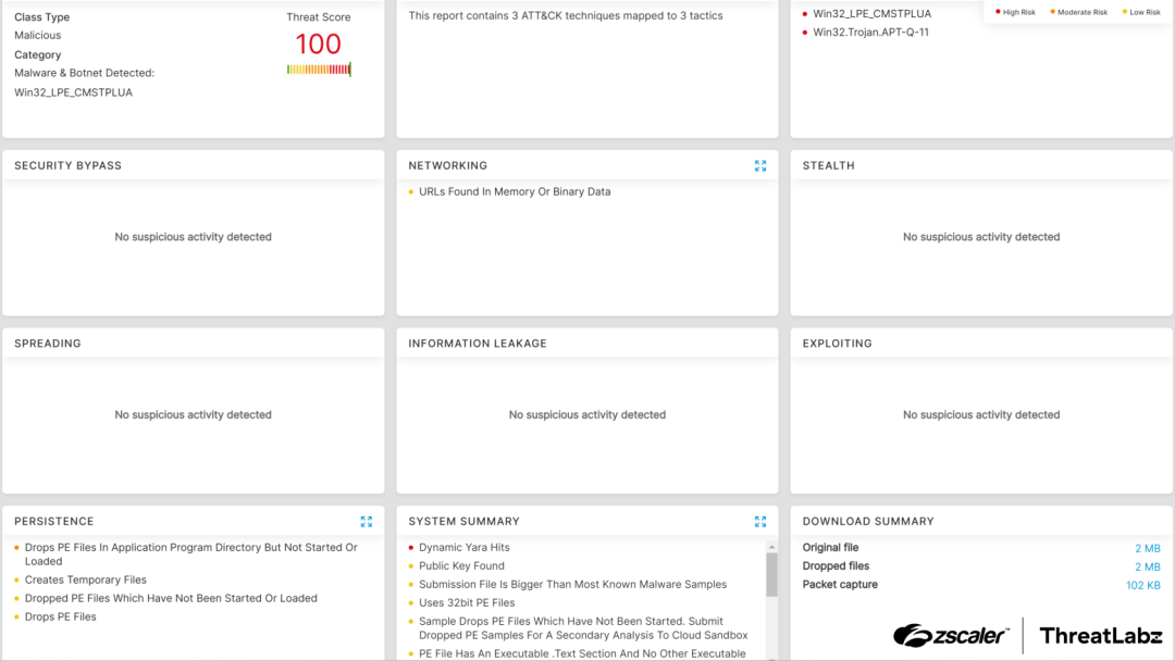 In addition to sandbox detections, Zscaler’s multilayered cloud security platform detects indicators related to CoffeeLoader at various levels with the following threat names: