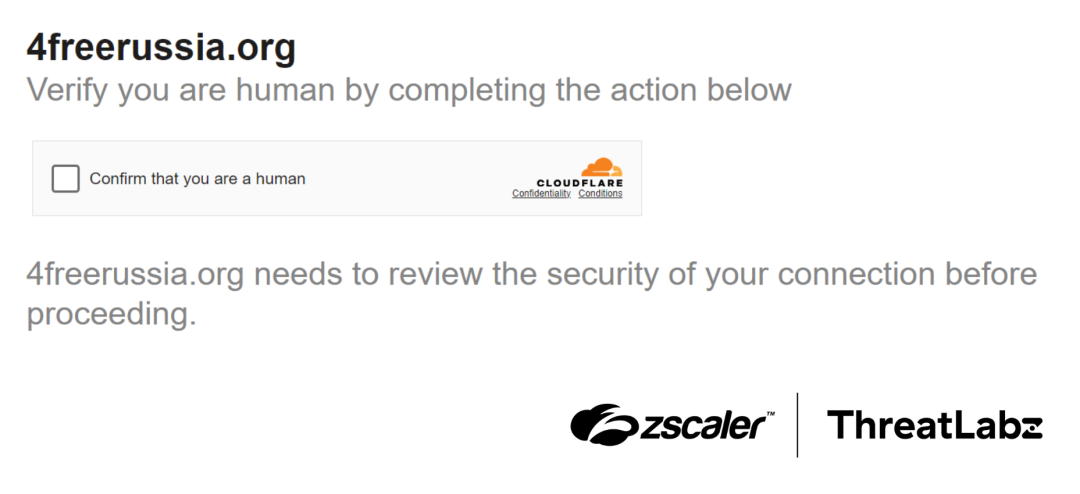 The infection chain begins with a webpage masquerading as an information resource addressing challenges faced by members of civil society and think tanks in Russia. This webpage employs the ClickFix social-engineering attack method to trick users into executing a malicious command in the Windows Run dialog box by displaying a fake Cloudflare Turnstile checkbox, as shown in the figure below.