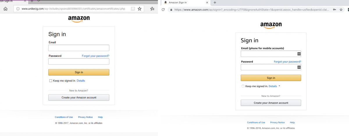 Can you tell the difference between these two Amazon login screens?