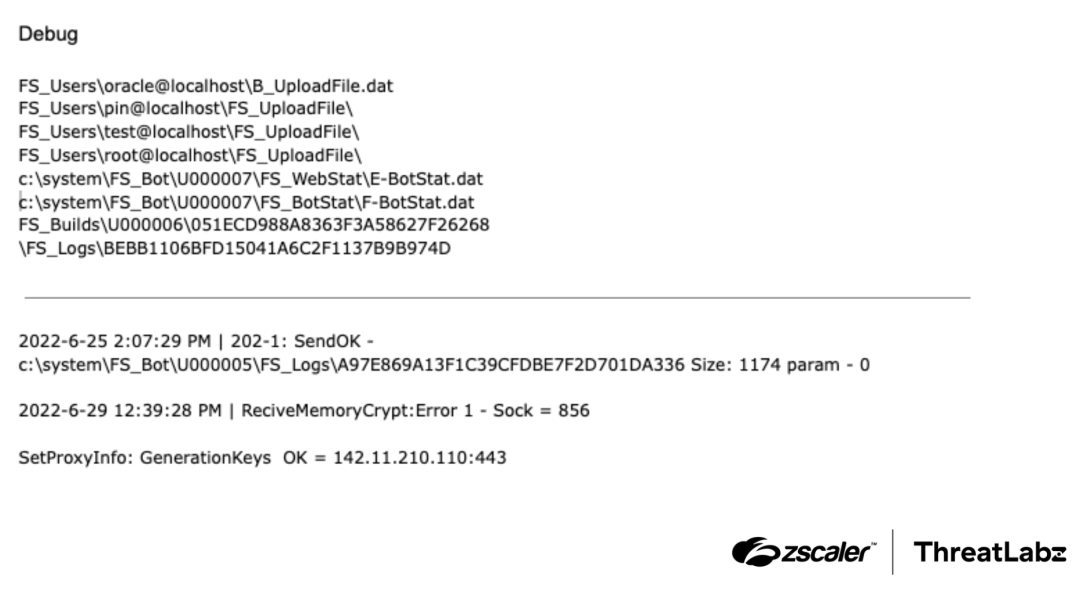 Figure 5: Sample debug information identified in DanaBot C2 server memory leaks.