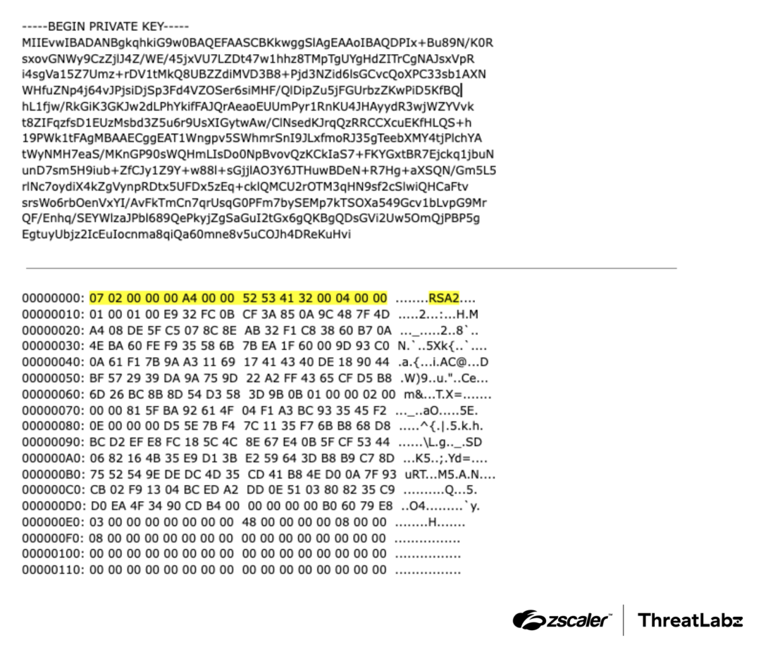 The memory leaks also exposed private cryptographic key material, as shown in the figure below (highlight added):