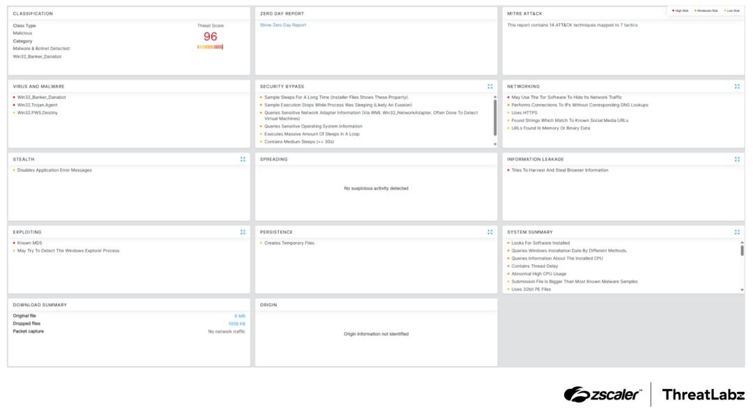 Figure 8: Zscaler Cloud Sandbox report for DanaBot.