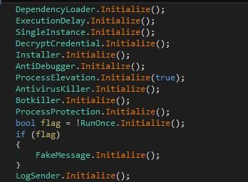 Before starting to log user data, the M00nD3V Logger initializes its configuration. The initialization phase includes several checks, such as an anti-debugger, a bot killer, an antivirus killer, and more. Figure 7 shows the initialization module.