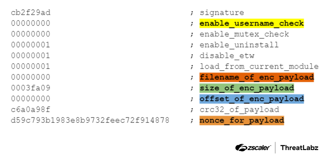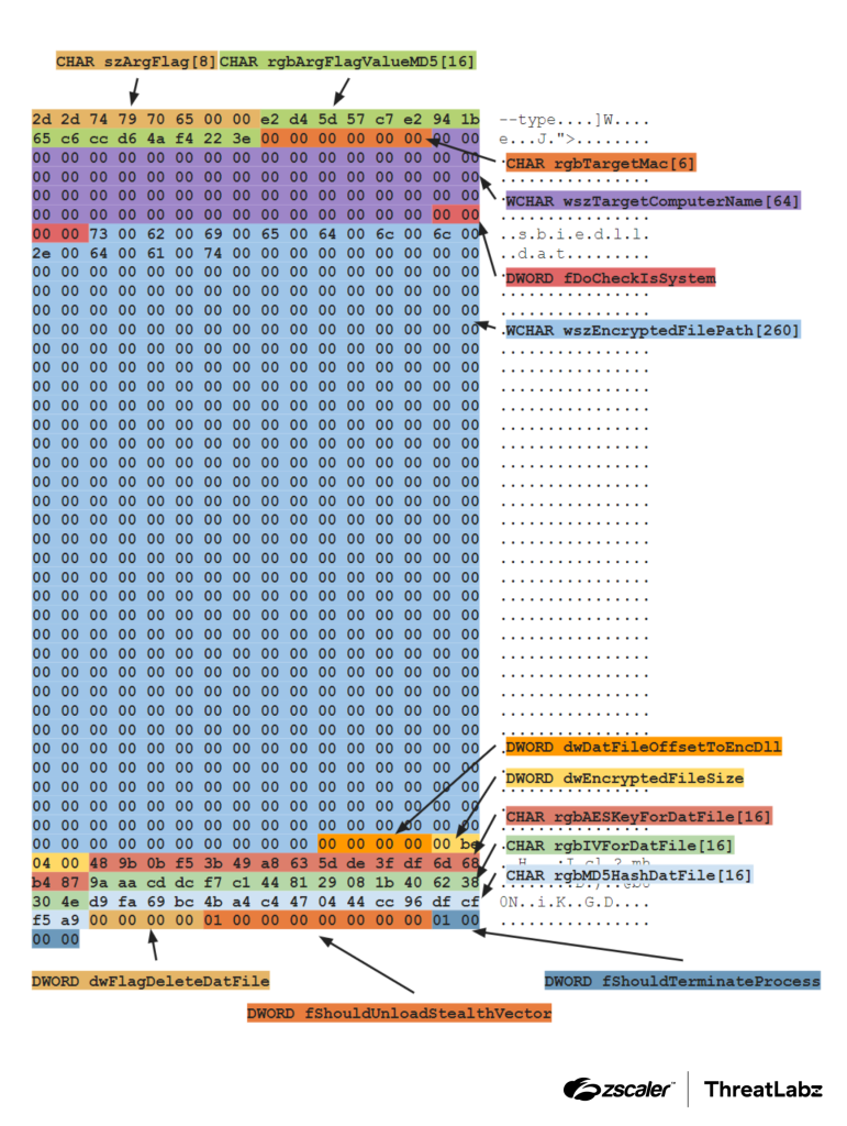 These similarities encompass various aspects such as guardrails, payload filenames, sizes and offsets, as well as cryptographic secrets. Both the original StealthVector and DodgeBox configurations also incorporate checksums for their encrypted payloads.
