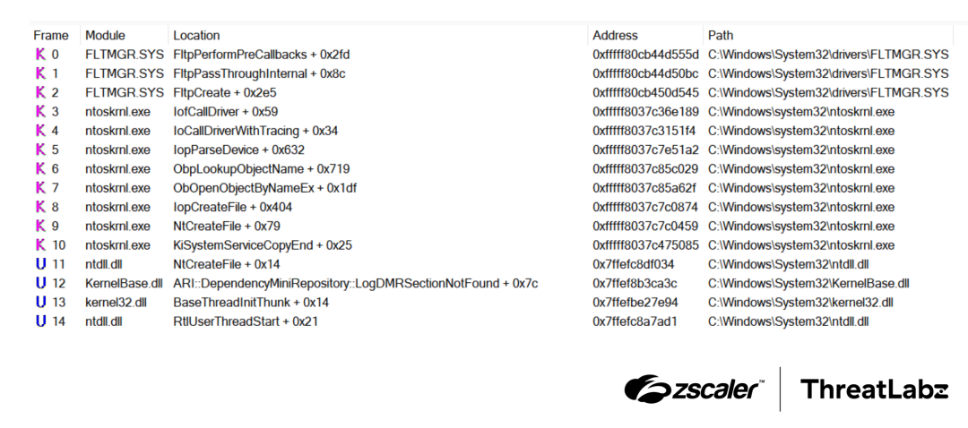 Figure 2: Normal example of stack trace from explorer.exe calling CreateFileW.