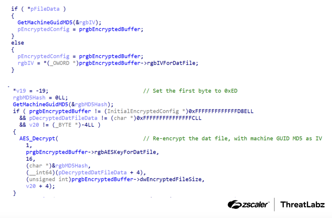 Figure 11: DodgeBox uses a technique called environment keying, where it uses the hash of the machine's GUID as the AES Initialization Vector (IV).