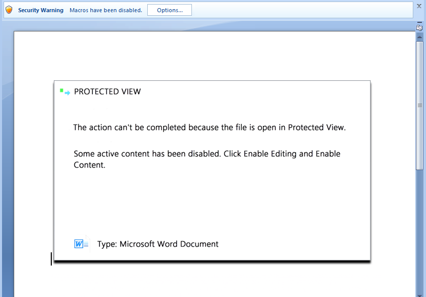 Figure 13: An error message to trick a user into believing the file is corrupt.