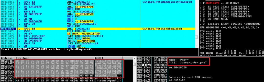 This Azorult downloads and executes two additional pieces of malware from the URLs received in the config data.