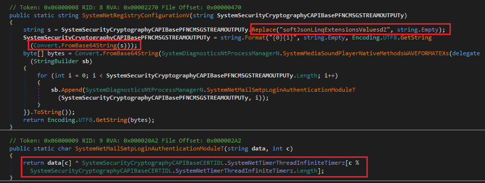 This encoded URL is getting parsed, Base64 decoded, then XORed with a hardcoded key.