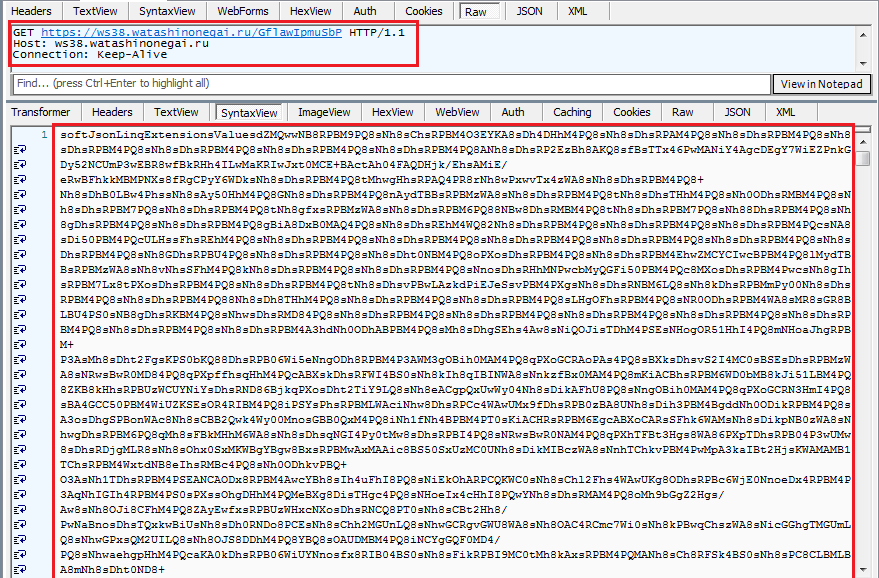 Decoded URL: "hxxps://ws38[.]watashinonegai[.]ru/GflawIpmuSbP"