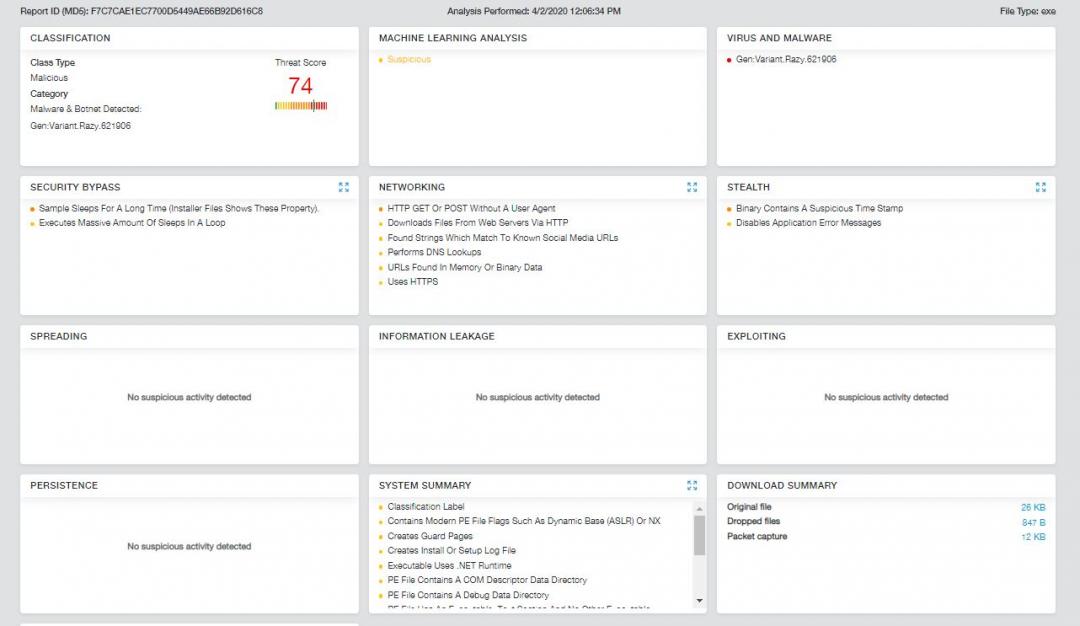 Fig 22: Zscaler Cloud Sandbox report for fake VPN4Test client