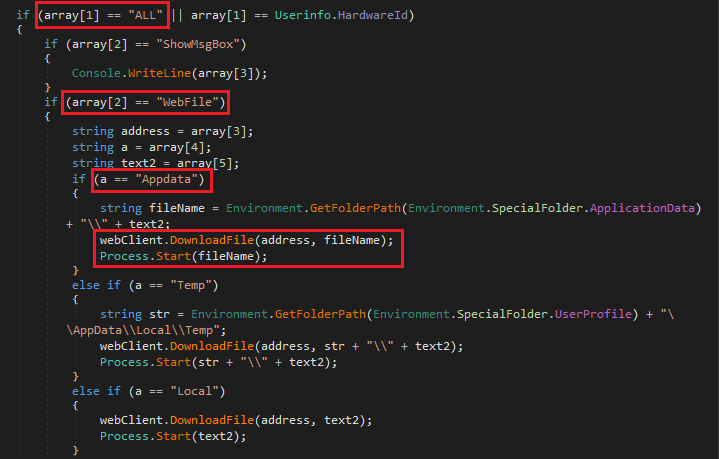 The downloaded file (VPN4Test-Setup.exe) from this site is again a MSIL-built executable. It is a loader module that downloads a configuration for the payload from the web and, based on that configuration, it downloads the payload and executes it on the system.