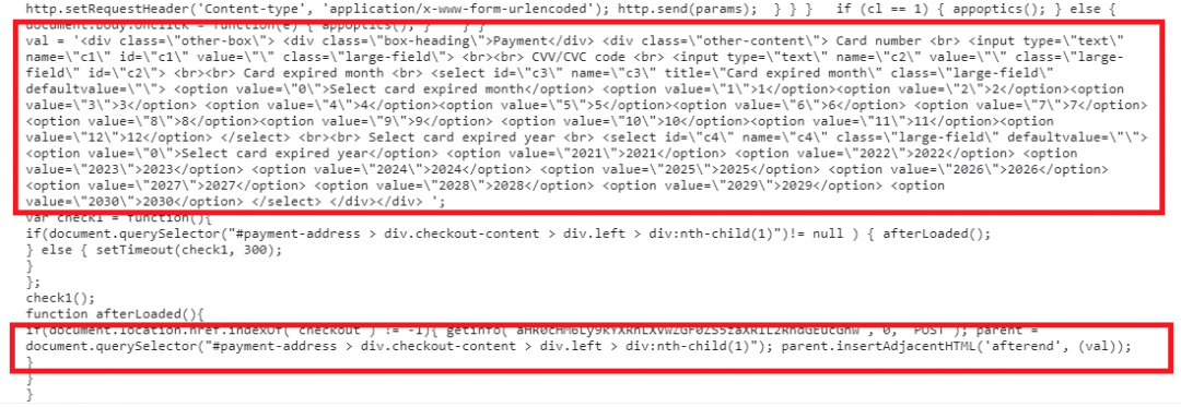 A few other versions of this skimmer campaign are not specific to any payment service and inject a general fake payment form.