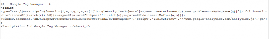 The malicious skimmer loader script is injected into the e-commerce website under the tag <!-- Google Tag Manager -->, pretending be a legitimate GTag script. The loader script is injected in all the pages on the compromised e-commerce website, but the skimmer is only loaded on the ‘Checkout’ page. The ThreatLabz team has not observed any major enhancements to the loader script. Below, we will share our analysis of the different versions of the skimmer codes we've observed in the past few months, as well as attackers' use of newly registered domains.