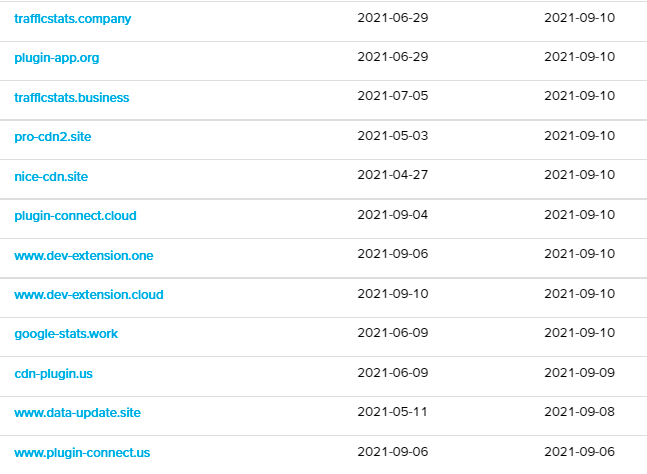 During analysis, we have observed that most of the newly registered domains related to the recent activity from this skimmer are resolving to IP 195.54.160[.]61 and there are multiple similar domains which could be used in future. Most of these domains were registered in the months of September and August, but a few have been active since April of this year.