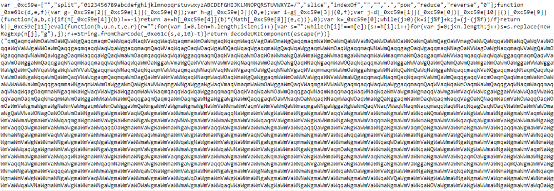 Figure 5: Obfuscated skimmer code injected from a newly registered domain.