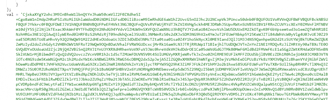 Figure 7: Base64 encoded (top) fake payment form, decoded (down) fake payment form.