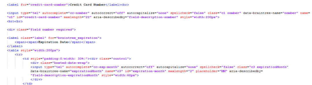 While analyzing this recent activity we found a few earlier versions of this skimmer which were active a few months earlier, with a major difference: it specifically targets the Braintree payment solution and replaces legitimate forms with a malicious fake form. The rest of the flow is the same as in the recent infections.
