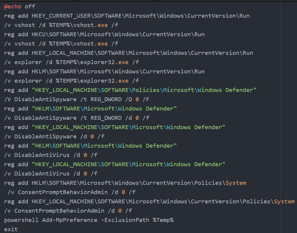 After downloading the payload, the malware copies it to a special directory temp folder in the system in hidden mode and executes it. First, it will execute the install2.bat file and then it will execute vshost.exe.