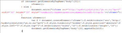 The code creates an IFRAME to hxxp://nysbrtyjdjntytdrj7yn.rr.nu/?go=2. This address is not blocked by Google Safe Browsing at this time. I was not able to retrieve the content.
