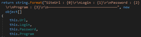 The malware fetches credentials from the “Login Data” file and stores them in the password.log file as per the format below: Path: ” \%Temp%\{Random_DirName}\password.log”.