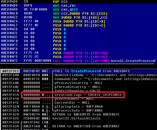 Figure 4: Spawns process in Suspended mode for injection