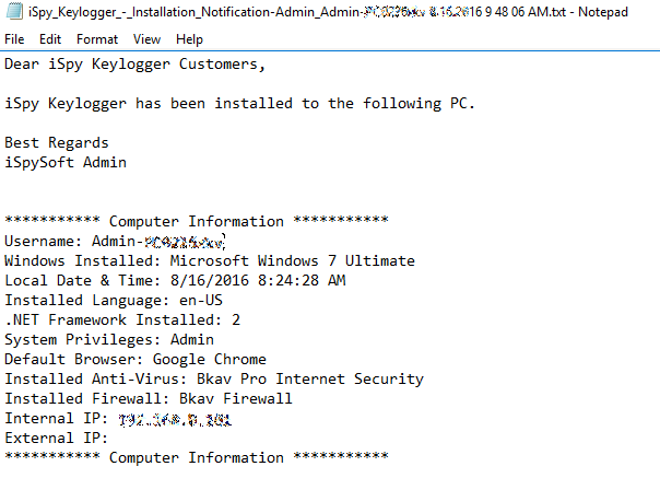 iSpy keylogger infection
