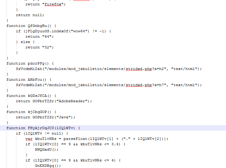 | The deobfuscated Javascript sheds some light on the iframe injection. |