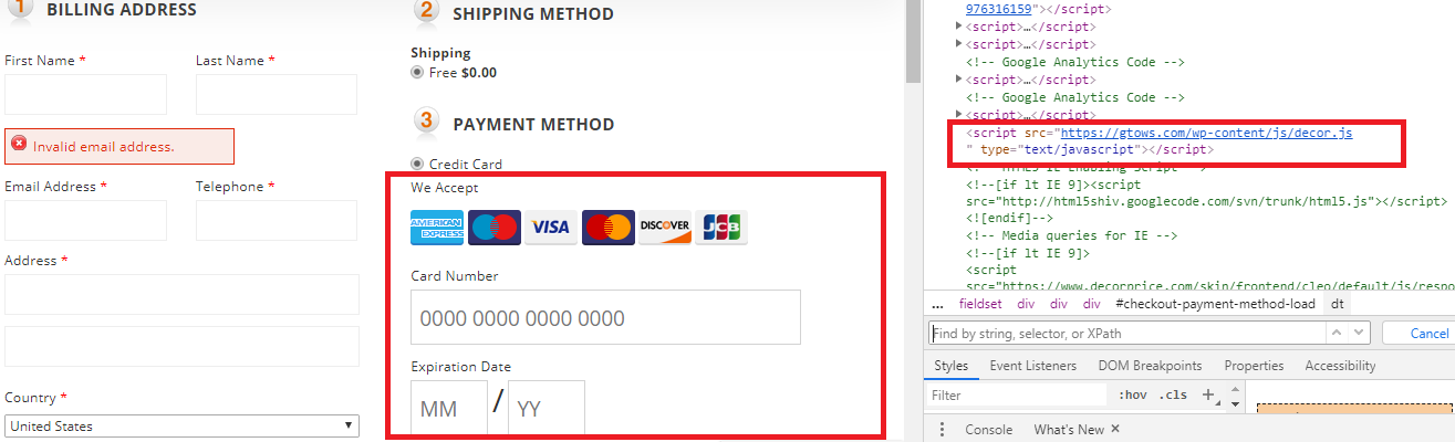 Fig 18: Fake credit card details field and malicious JavaScript file