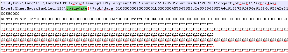 The same “\objupdate” control was used in CVE-2017-0199 [2] . However, the current malicious document is not using this or any other vulnerability.