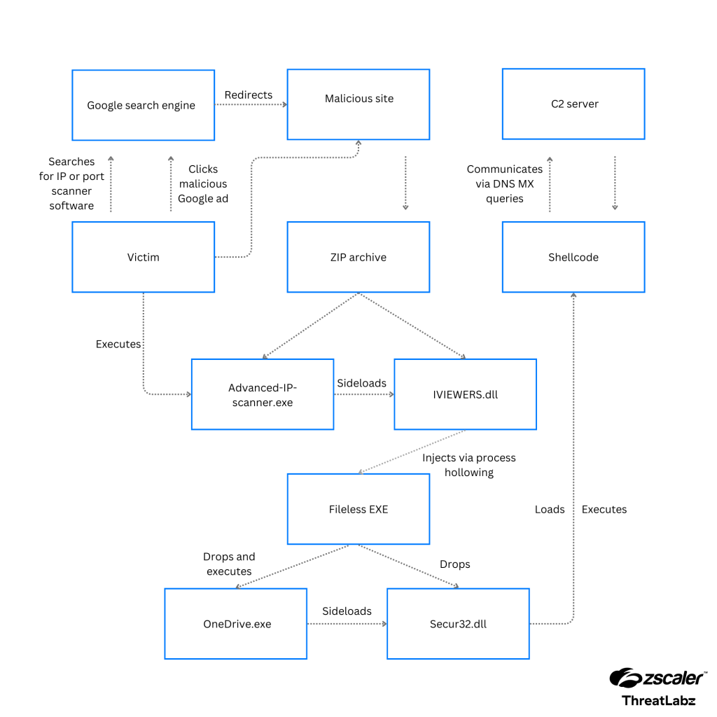 Beginning in March of 2024, Zscaler ThreatLabz observed a threat actor weaponizing a cluster of domains masquerading as legitimate IP scanner software sites to distribute a previously unseen backdoor. The threat actor registered multiple look-alike domains using a typosquatting technique and leveraged Google Ads to push these domains to the top of search engine results targeting specific search keywords, thereby luring victims to visit these sites.