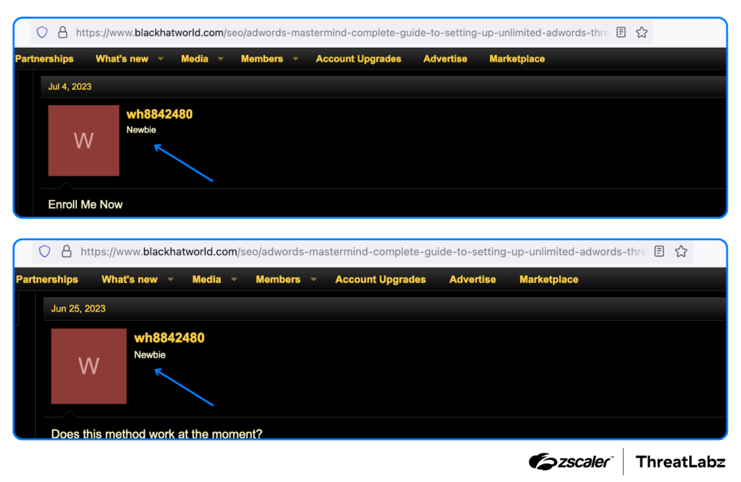 Google Ads threshold accounts and techniques for abusing them are often traded on BlackHat forums. Many times they offer a way for the threat actor to add as many credits as possible to run Google Ads campaigns. This allows the threat actors to run campaigns without actually paying until the threshold limit. A reasonably high threshold limit lets the threat actor run the ad campaign for a significant amount of time. Once the threshold has reached, they can use the same technique with a new Google Ads account to repeat the process.