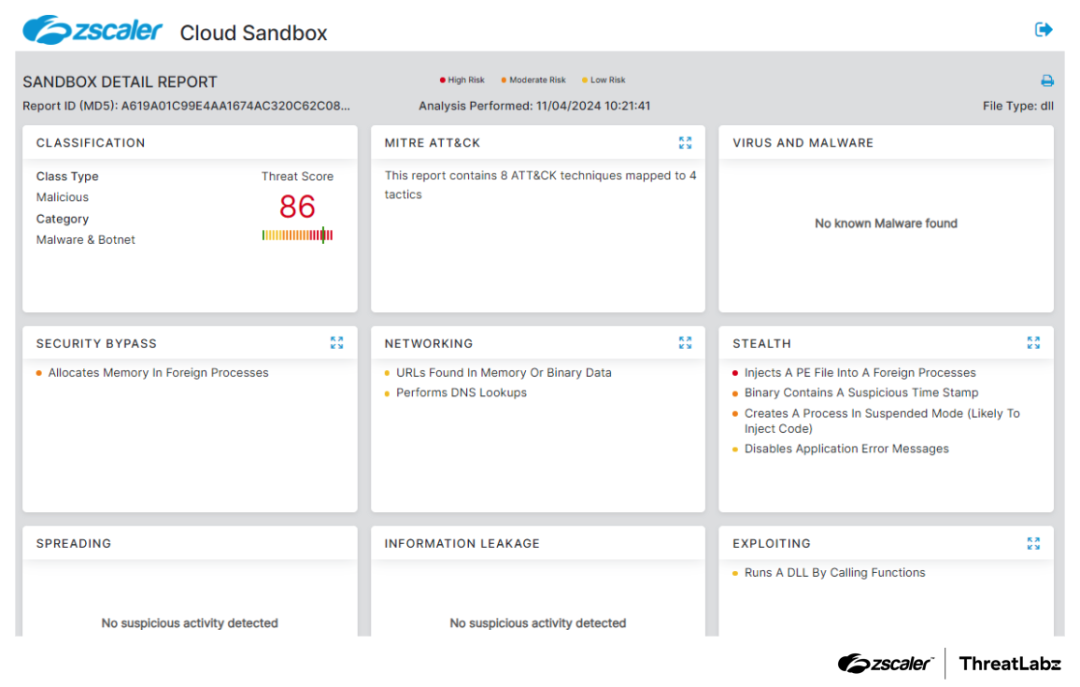 Figure 10: Zscaler sandbox detection report