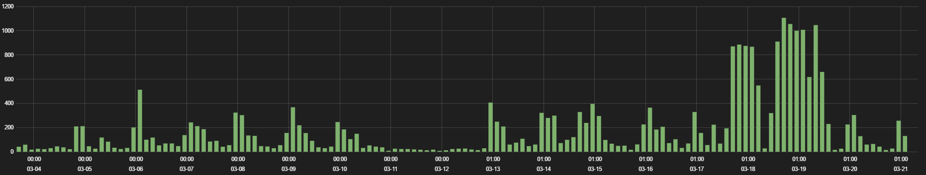 Figure 2. Malicious activity blocked for web activity in the sports category , 4 March 2017 to 21 March 2017
