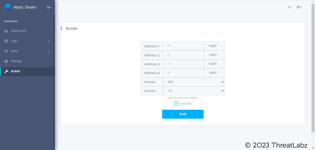 Figure 4. Mystic Stealer control panel builder dialog