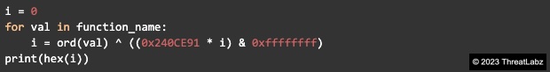 Windows APIs imported by hash. The stealer resolves and dynamically loads Windows APIs using a custom XOR based hashing algorithm represented in the Python snippet shown below: