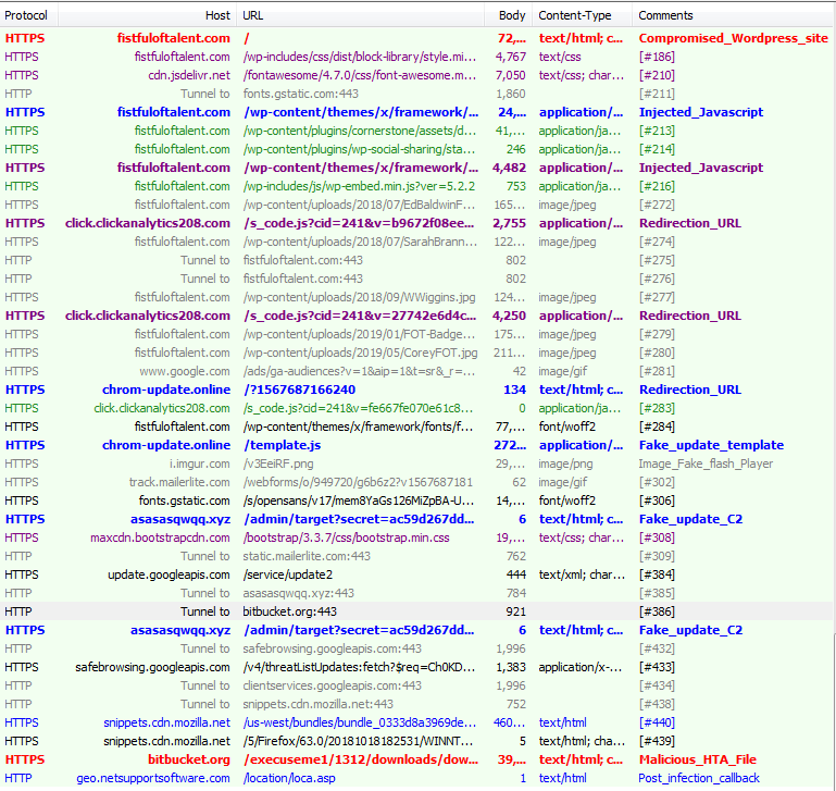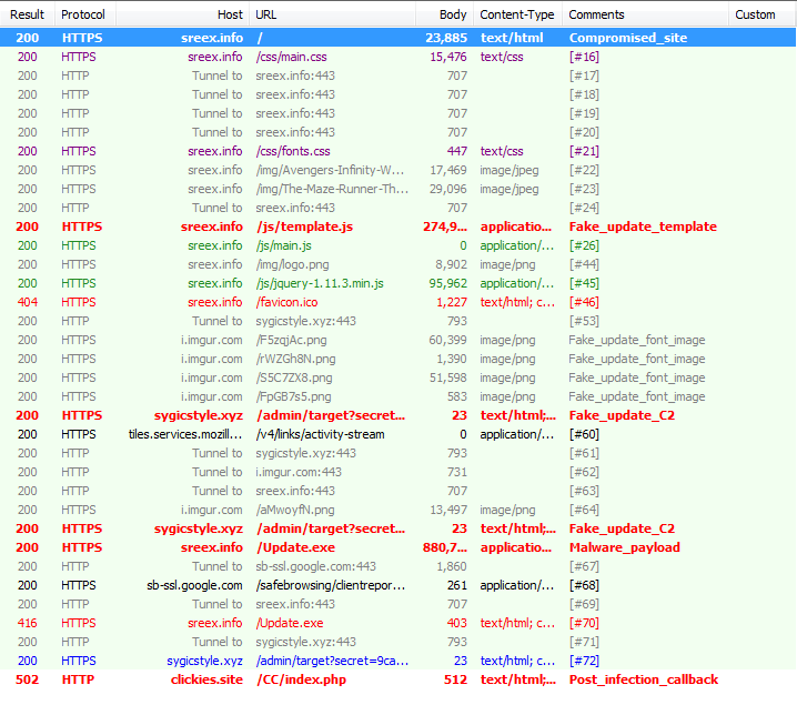 Figure 16: The overall traffic of the fake Flash Player update malware campaign