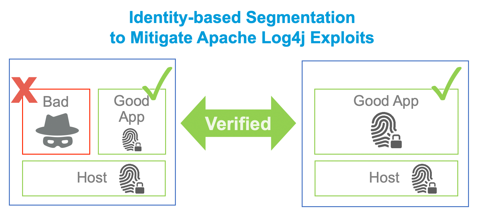 In the exploit example (image above), if identity-based segmentation had been in place with least-privilege enforcement, attack risk could be reduced through multiple layers of defense: