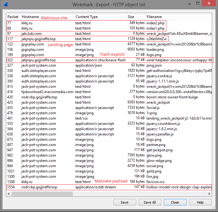 The landing page serves a malicious SWF in standard EK form. This exploits Flash Player and downloads, decrypts, and executes a packed Gamarue payload.