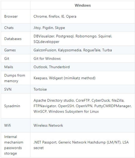 This will get the credentials of all the software shown in the figure below: