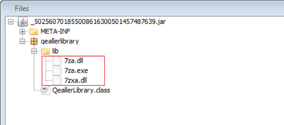 _502560701855008616300501457487639.tmp (/lib/7z) is again a JAR file that doesn’t have any Java code inside, but contains three PE files inside the libraries as shown in Fig 8.