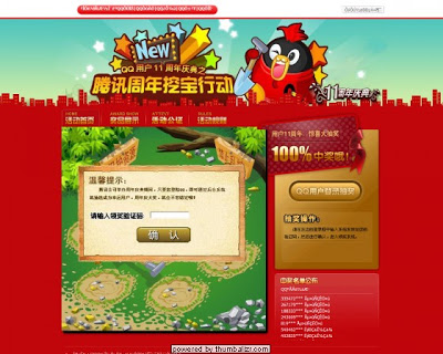The other popular QQ phishing target is the Reward Center, where QQ rewards users for using their services. Fake QQ Reward Centers attempt to steal user credentials. Like for the QQ Security center scam, all phishing pages are nearly identical, and not detected by Phistank or Google SafeBrowsing.